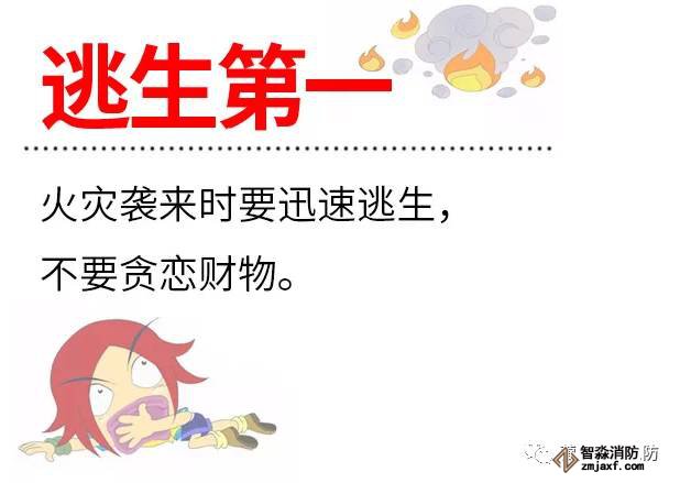 1、火災(zāi)襲來(lái)時(shí)要迅速逃生,不要貪戀財(cái)物,不要貪戀財(cái)物,不要貪戀財(cái)物!PS:重要的事情說(shuō)三遍!