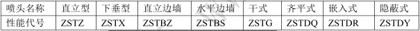 3)噴頭規(guī)格型號的標(biāo)記由類型特征代號、性能代號、公稱口徑和公稱動作溫度等部分組成。