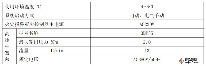 表1-2泵式細(xì)水霧自動(dòng)滅火系統(tǒng)主要參數(shù)