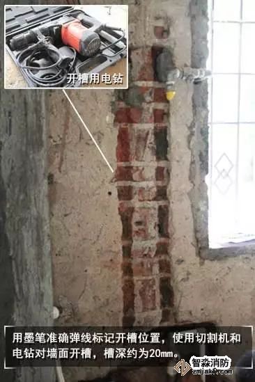 落實水路走向后,開始開暗槽,用專業(yè)的切割機按照畫好的線路開槽,這個工序一般會持續(xù)3--4小時。此時要注意切割時不要切入太深,以免破壞墻體的鋼筋,影響房體結構。