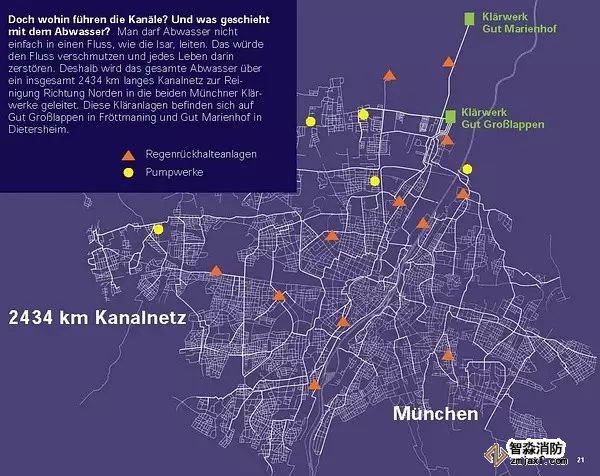 像照片中的那樣,每逢夏天,河邊是市民最愛的去除之一。曬太陽,燒烤,游泳。等等。但你能夠想象么,如此清澈的河水,有相當(dāng)一部分也是來自于慕尼黑城每天所排進(jìn)去的生活污水,工業(yè)廢水和包括落在地面的雨水。有容乃大的Isar河海涵了這些“污水”而依然美麗的功勞歸功于慕尼黑出色的市政排水系統(tǒng)和它背后的那個(gè)管理機(jī)構(gòu)——Münchner Stadtentw?sserung。