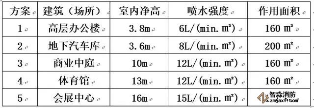 注:1 表中未列入的場(chǎng)所,應(yīng)根據(jù)本表規(guī)定場(chǎng)所的火災(zāi)危險(xiǎn)性類(lèi)比確定. 2 當(dāng)民用建筑高大空間場(chǎng)所的最大凈空高度為12m<h≤18m時(shí),應(yīng)采用非倉(cāng)庫(kù)型特殊應(yīng)用噴頭。