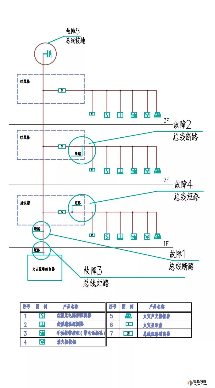 1報警控制器上顯示“總線故障”或“器件故障故障” 2 報警控制器上反復報出同一設(shè)備“器件故障” 3 現(xiàn)場設(shè)備指示燈全部熄滅 因總線接地時情況較復雜,現(xiàn)象可能是以上1種或幾種